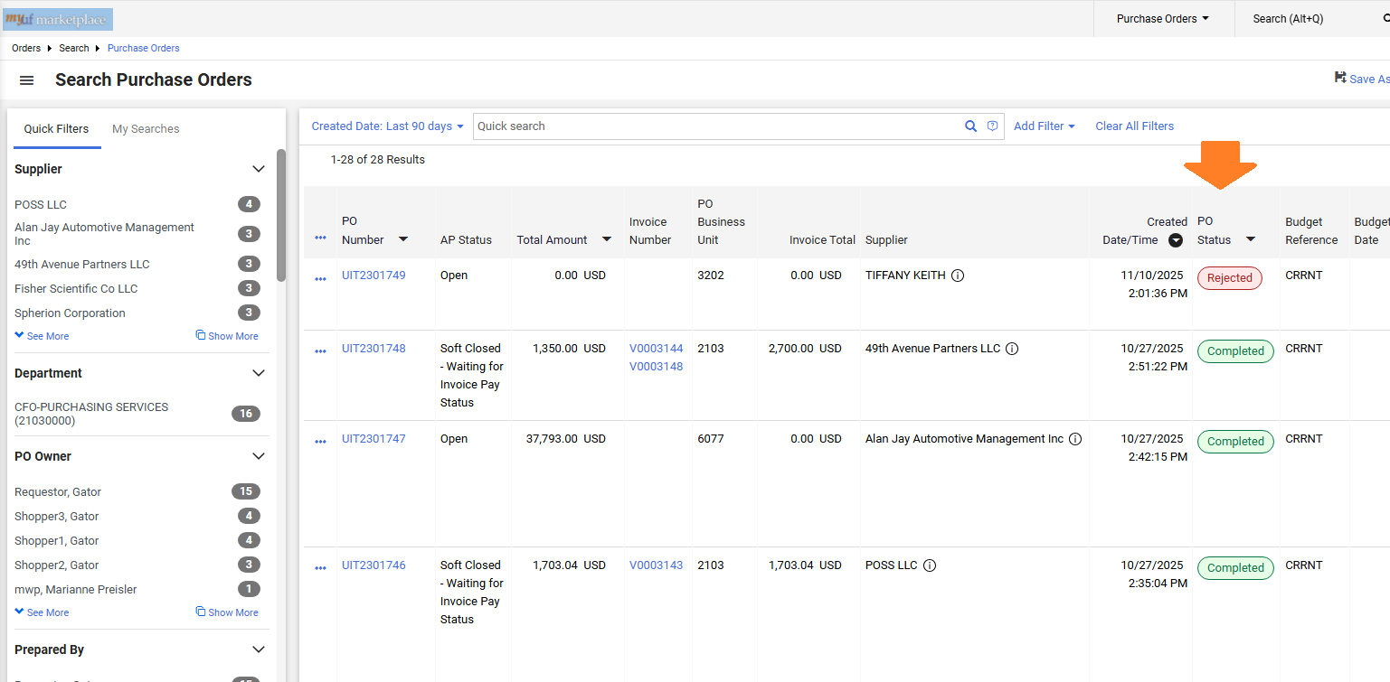With the new myUF Marketplace Quarterly Upgrade on Monday, November 17, 2025, the status markers will have a lighter color in the search results: